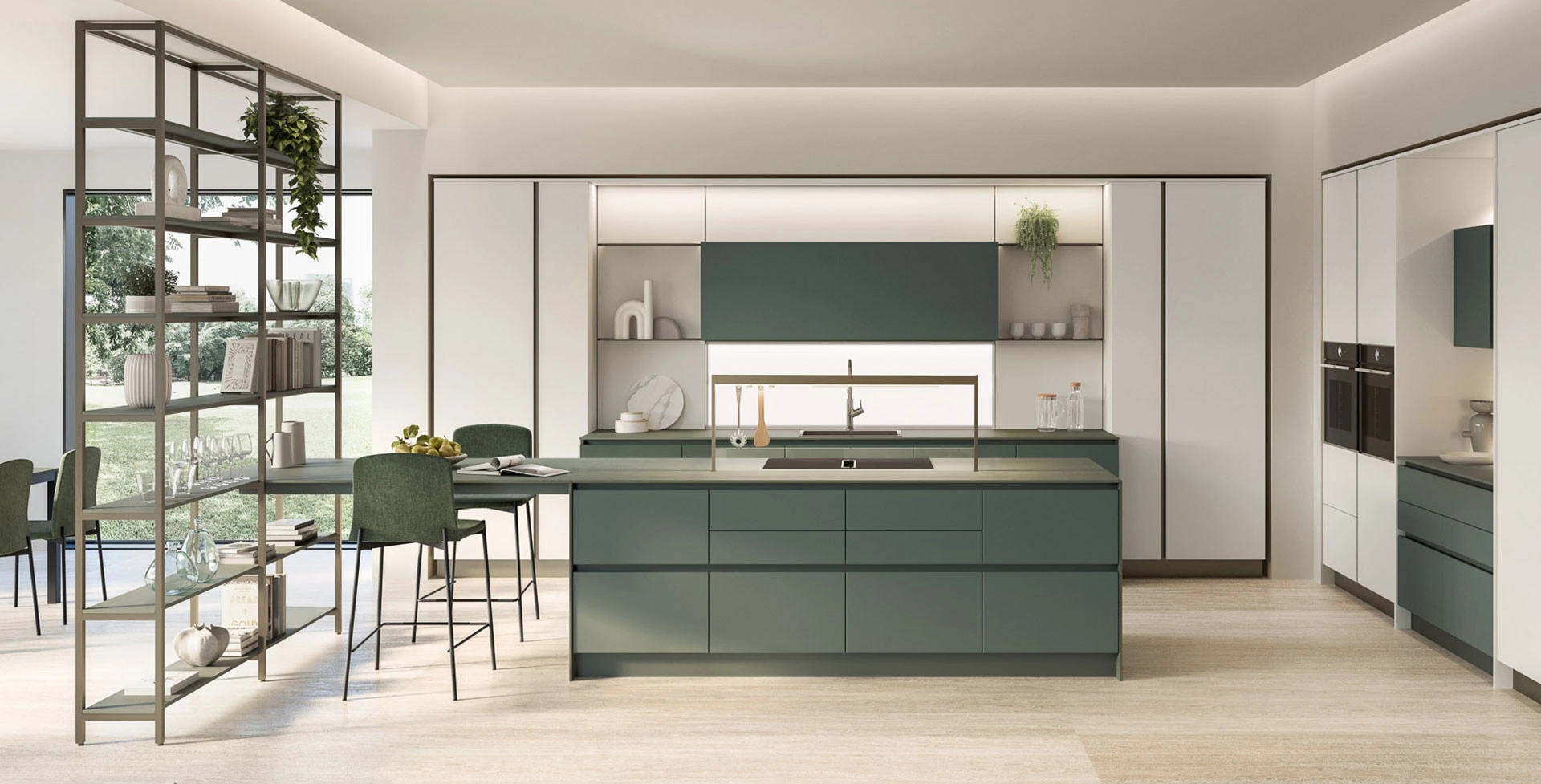 Realizza con noi un progetto su misura: per vivere in pieno comfort il tuo habitat, i nostri arredatori sono pronti a guidarti con serietà nella selezione. Tra i differenti modelli presenti nel catalogo Veneta Cucine, la cucina nell'immagine rende lo spazio facilmente fruibile e danno la possibilità di vivere gli ambienti domestici appieno. Le Cucine Moderne dell'azienda Veneta Cucine possiedono una generale armonia tra mood moderno, ricerca tecnologica, funzionalità e creatività.
