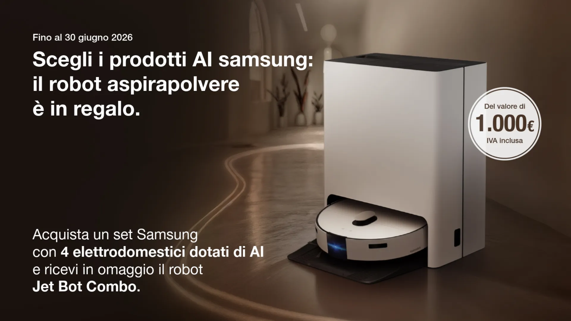 Scegli i prodotti AI Samsung il robot aspirapolvere è in regalo.
