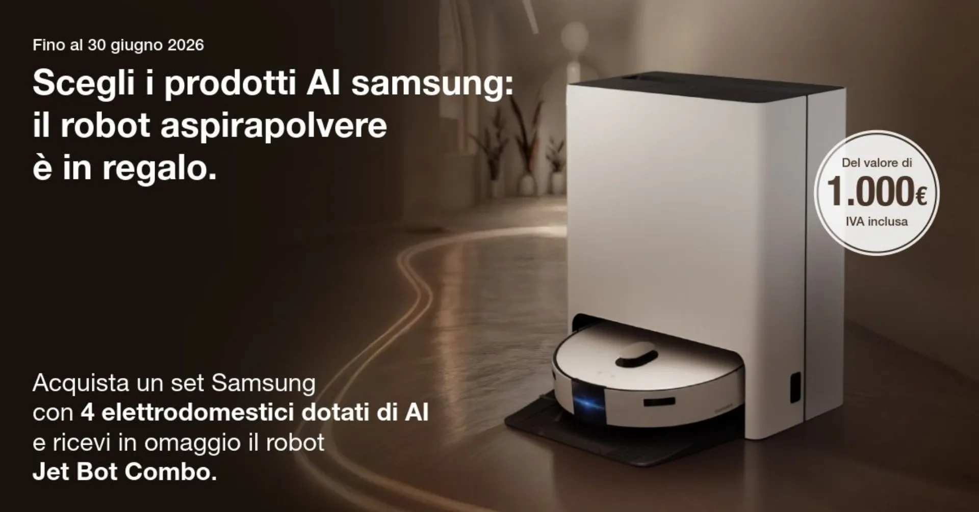 Scegli i prodotti AI Samsung il robot aspirapolvere è in regalo.